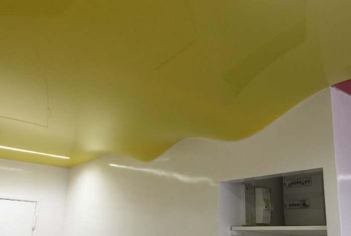 En finition laqué sur un plafond tendu plus la couleur est foncé, plus l'effet d'un miroir au plafond est présent.