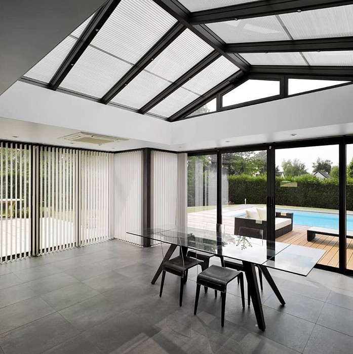 l'interieur est mis en valeur avec le plafond tendu Luxtend® noir laqué